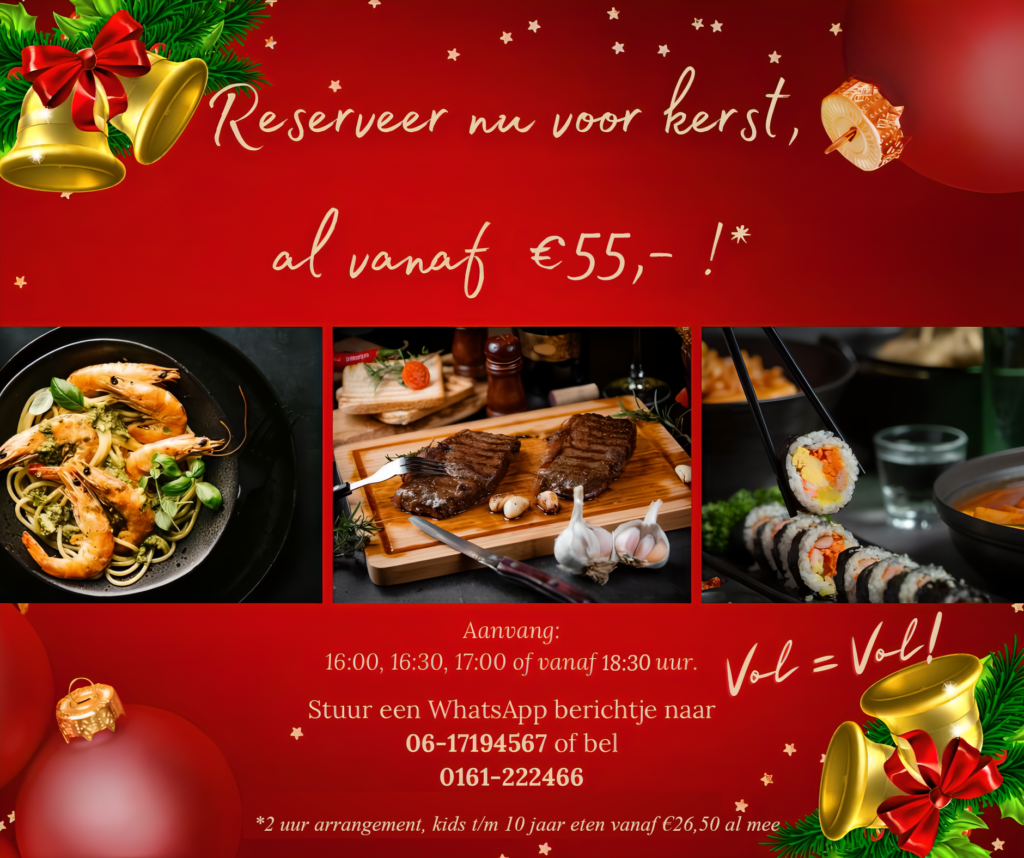 Bij ons betaalt u niet hetgeen u eet, maar voor het aantal uur dat u verblijft. Van voorgerecht tot aan de desserts.